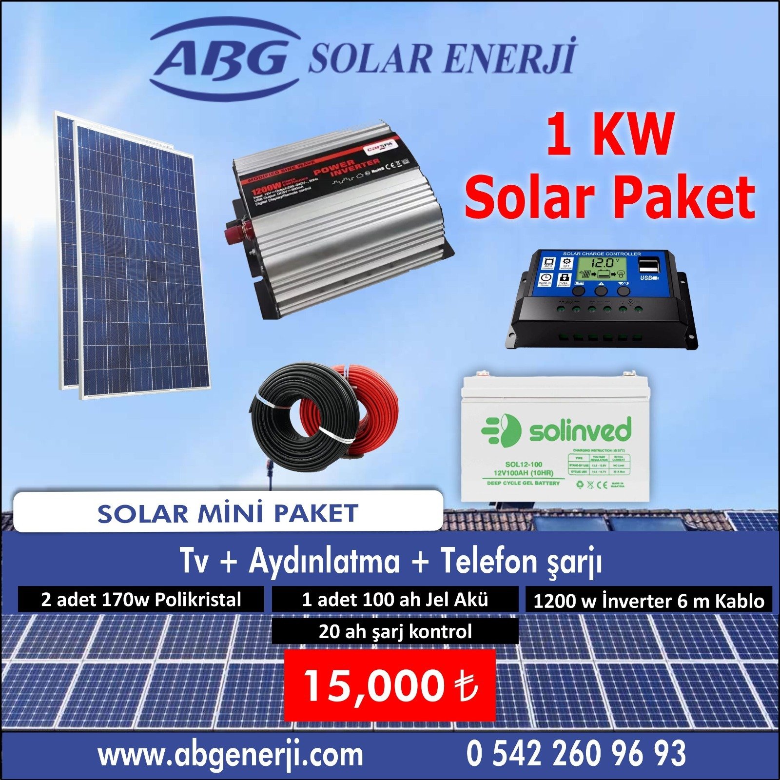 2 ADET 170W POLİKRİSTAL +1 ADET 100 AH JEL AKÜ + 1200 W İNVERTER 6 M KABLO + 200 AH ŞARJ KONTROL