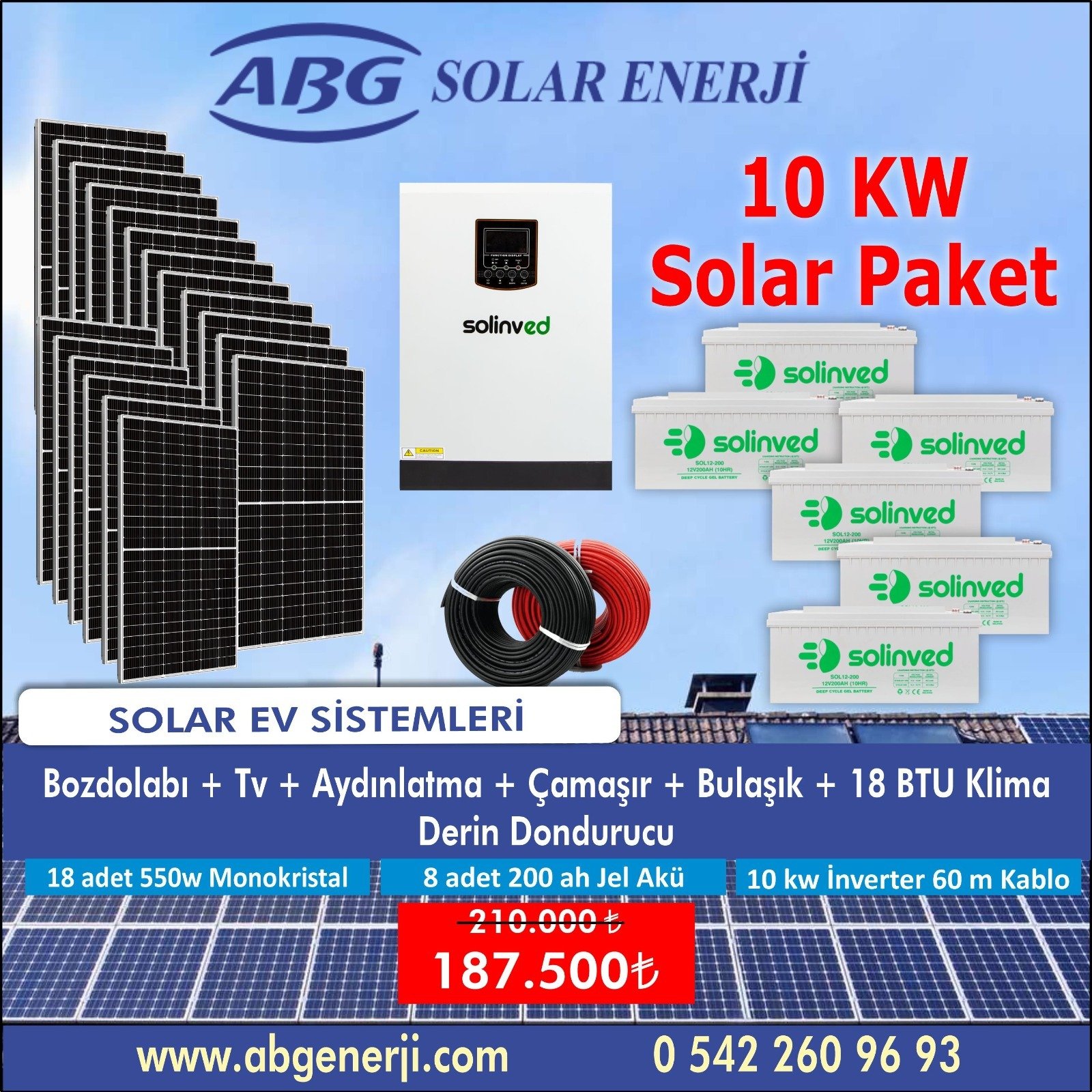 18 ADET 550W MONOKRİSTAL+8 ADET 200 AH JEL AKÜ +10KW İNVERTER 60M KABLO