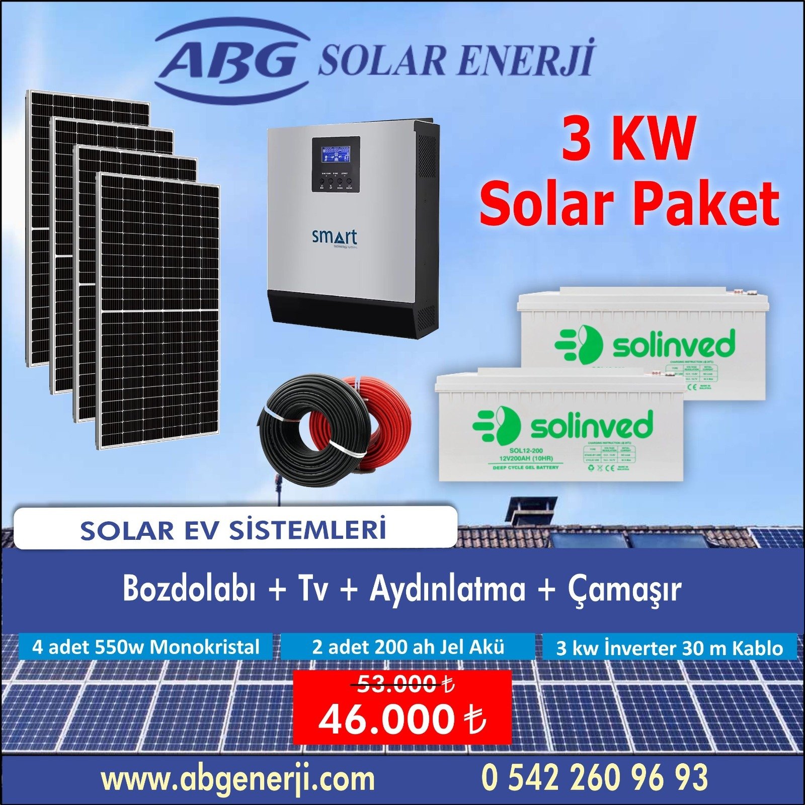 3KW İNVERTER 30 M KABLO